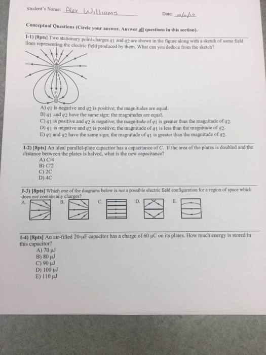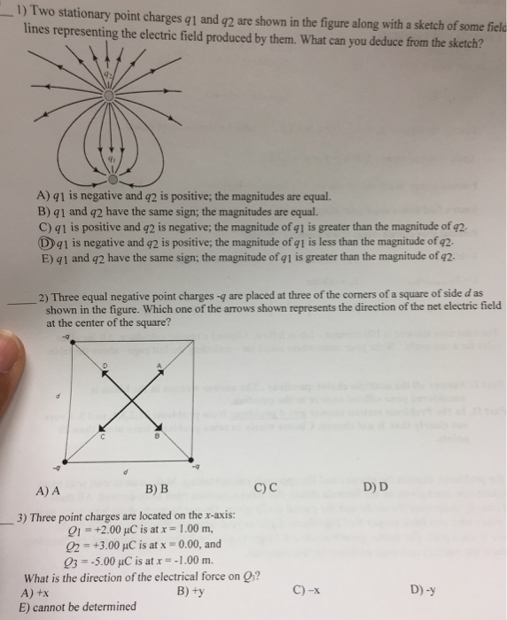 Consider two stationary point charges with q 4 nC and q2 -2 nC as shown in the figure below A. View Test Prep - Physics 2 - Exam 1 Cheat Sheetdocx from PHYSICS 2 at University of South Florida. A q1 is negative and q2 is positive.